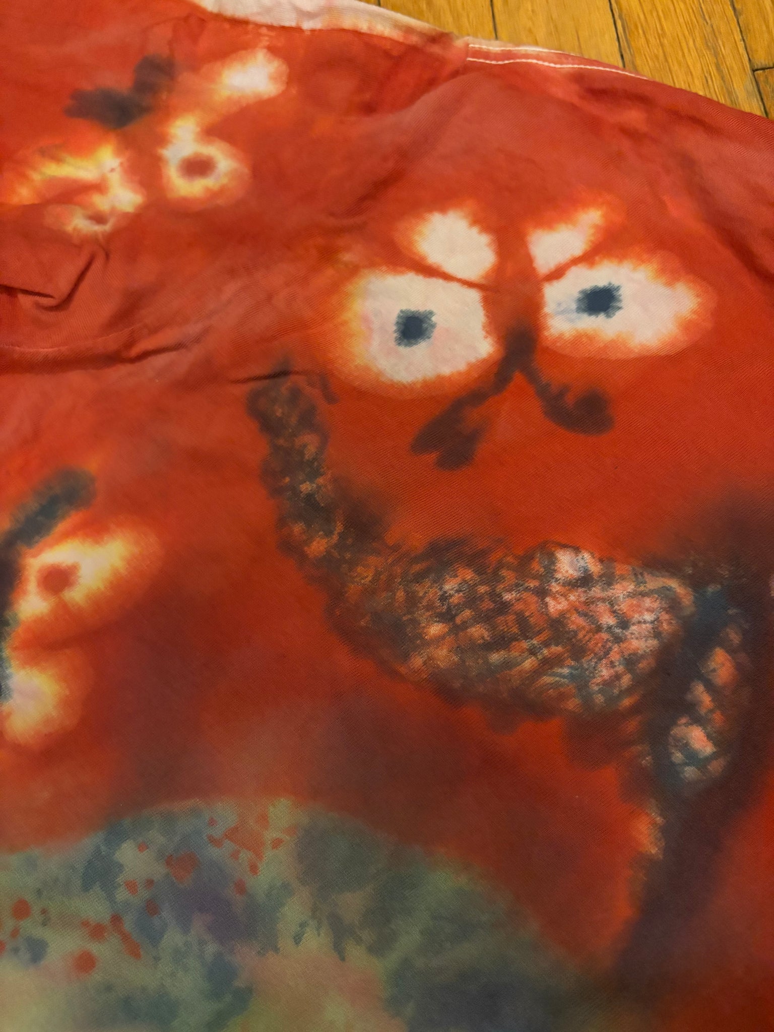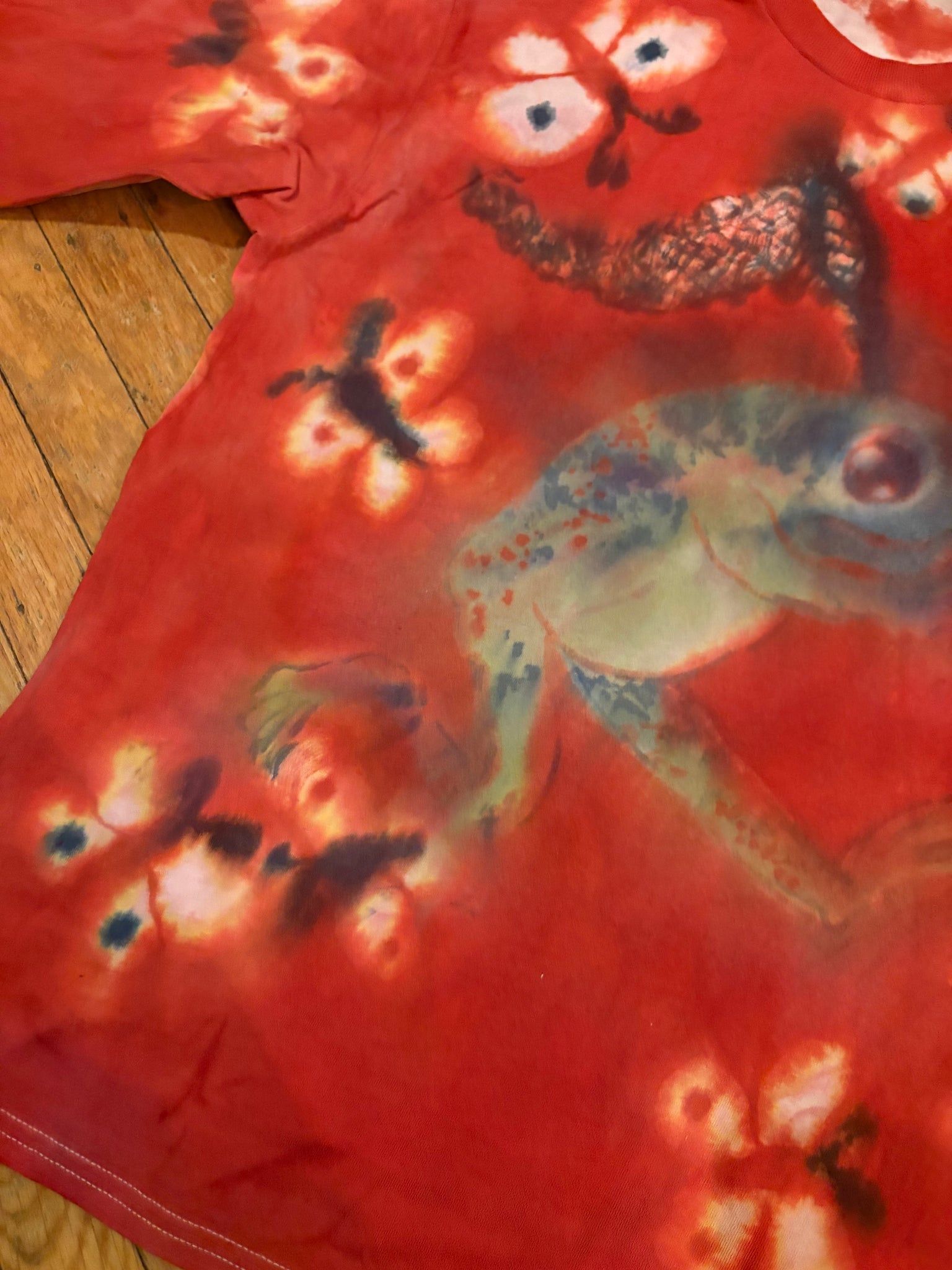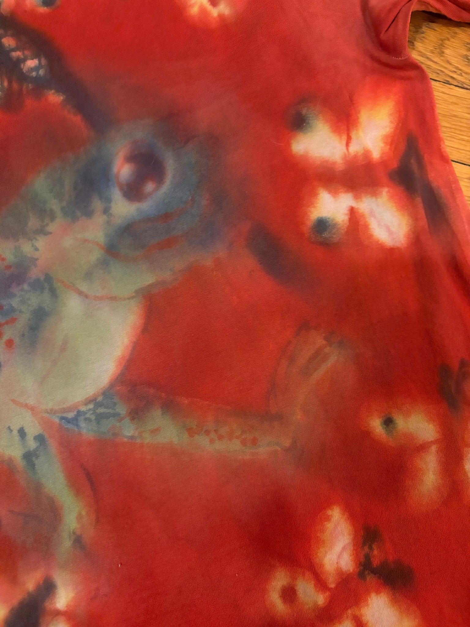 painted with low-impact fiber reactive dyes on a size L unisex gildan brand 100% cotton long sleeve tee