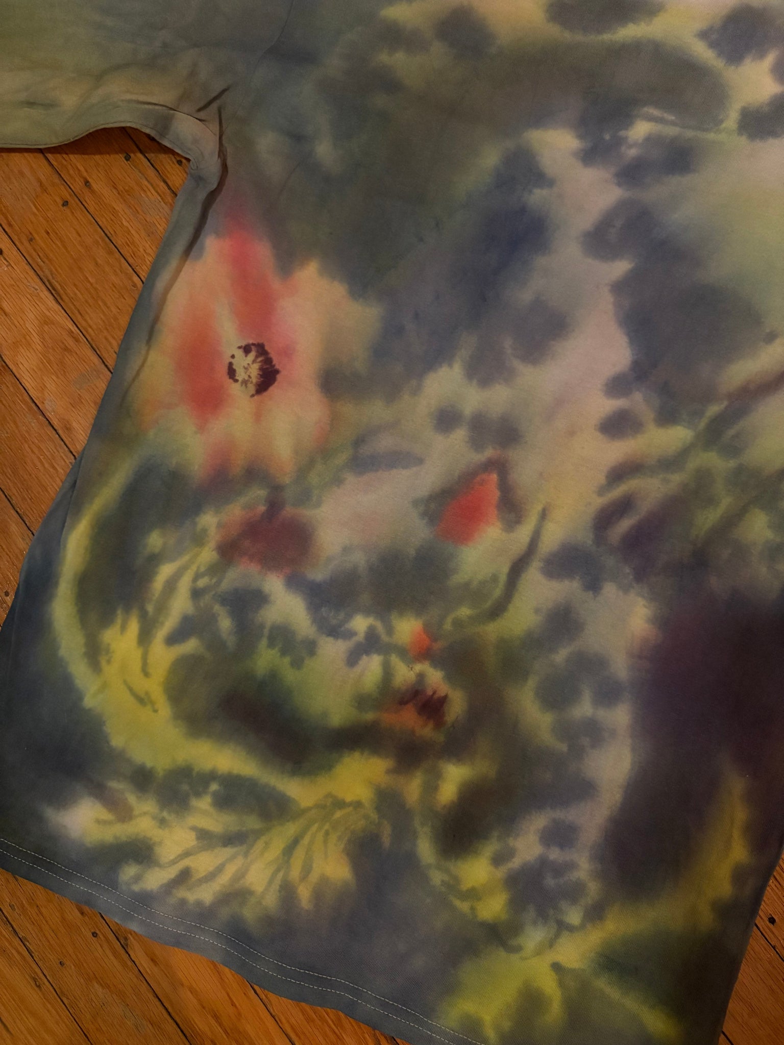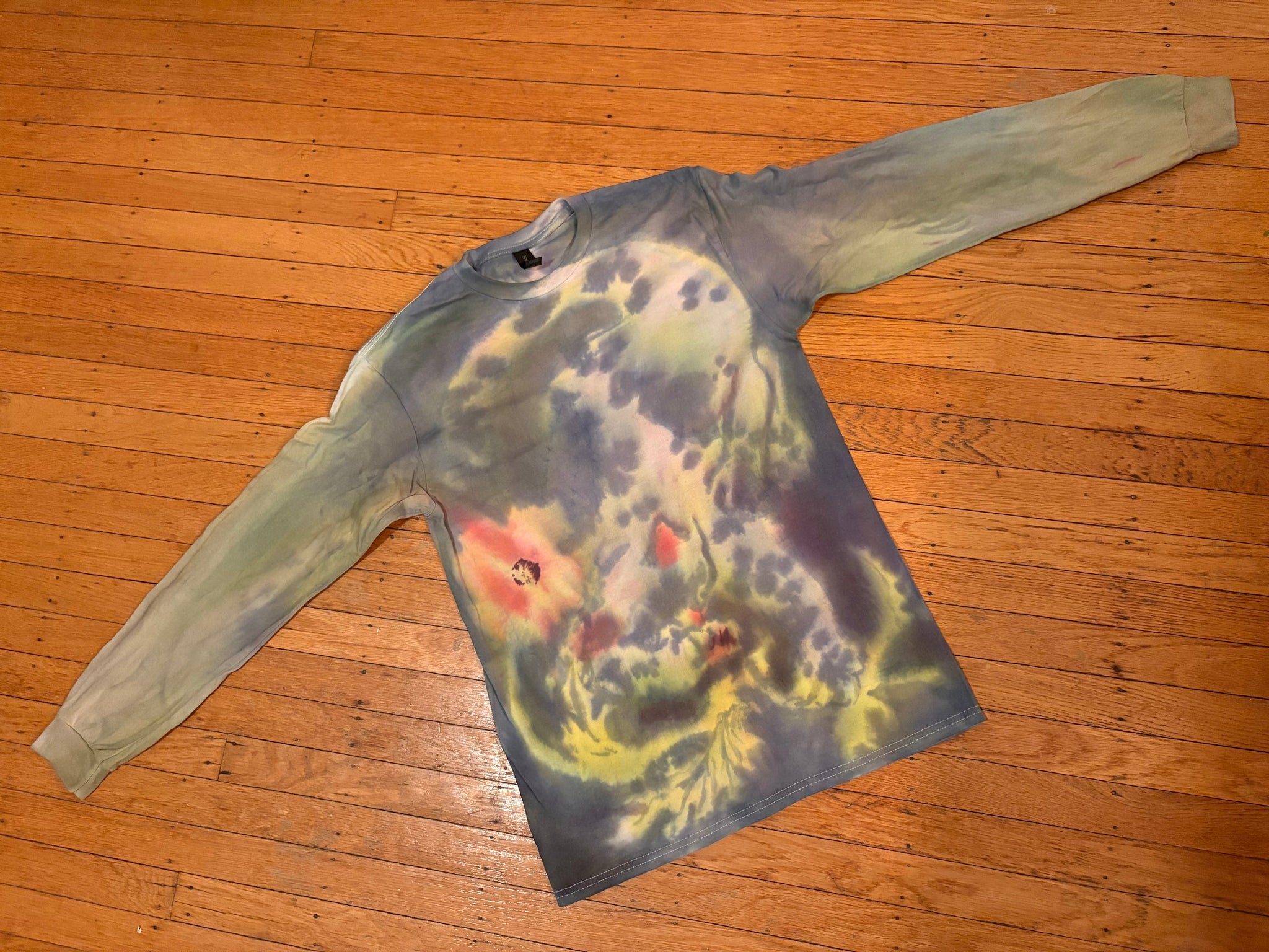 painted with low-impact fiber reactive dyes on a size M unisex gildan brand 100% cotton long sleeve tee